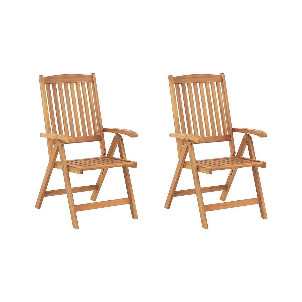 Opklapbare, houten tuinstoel in een set van 2. Deze tuinstoelen zijn een uitstekende aanvulling op elke tuin of balkon en passen bijzonder goed bij een traditionele stijlen. De tuinstoelen zijn gemaakt van massief acaciahout en zijn daarmee uitzonderlijk duurzaam en bestand tegen zowel langdurig gebruik als diverse weersomstandigheden. De tuinstoelen zijn inklapbaar en zijn daardoor gemakkelijk op te bergen en zeer geschikt voor kleinere ruimtes.