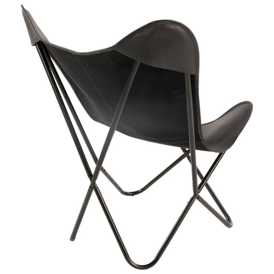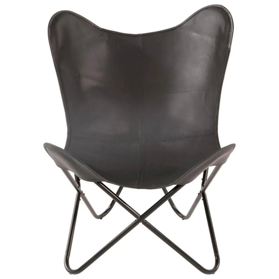 Hoe stoer is deze Buffalo vlinderstoel? Geniet van het gave design van de Buffalo vlinderstoel! Dit rustieke exemplaar komt uit de collectie van het woonmerk Les en heeft een afmeting van 75x75x87cm. Hij is voorzien van een stevig ijzeren frame met een zwarte kleur als afwerking. Kenmerkend voor zijn design is de vlindervormige zitting, welke is uitgevoerd in zwart geitenleer. Vlinderstoel Buffalo voelt zich thuis in vele woonstijlen, waaronder een stoer, trendy, basic, industrieel. Maximaal draaggewicht: 100 kg.