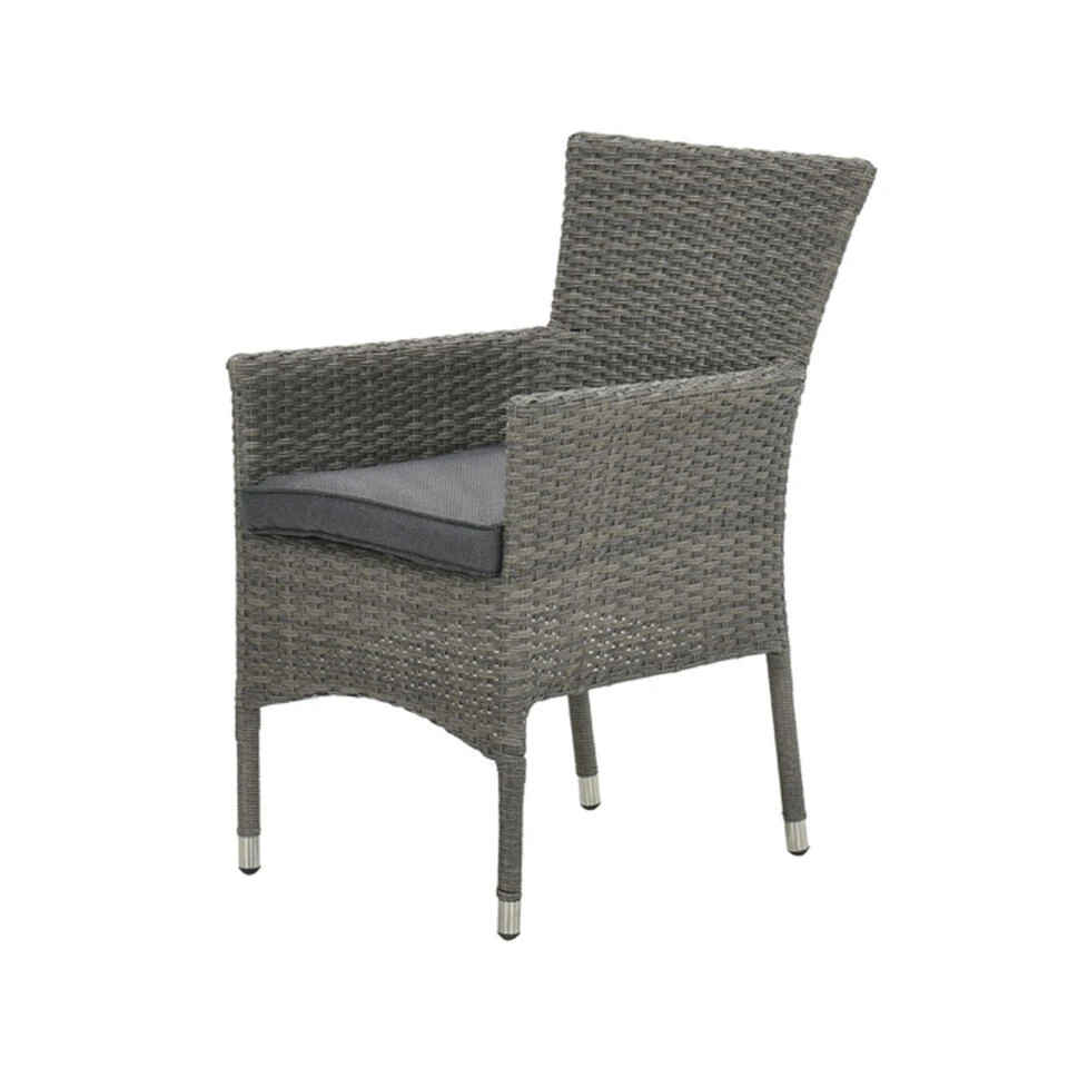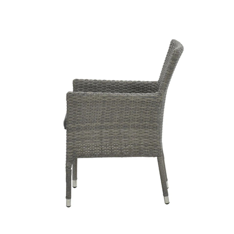 De Nicosia wicker tuinstoel heeft een stevig aluminium frame. Aluminium kan niet verroesten en is daarom het perfecte materiaal voor buitenshuis. Daarnaast is het licht in gewicht waardoor de stapelbare tuinstoel eenvoudig te verplaatsen is. Om dit frame is het wicker vlechtwerkdraad bevestigd. Wicker wordt gemaakt van kunststof en heeft weersbestendige eigenschappen. Perfect bestand tegen het Nederlandse klimaat en dus een lange levensduur. Het vlechtwerkdraad is uitgevoerd in de kleur: Organic grey. Voor extra comfort wordt de wicker tuinstoel geleverd met een zitkussen. Om ruimte te besparen wordt het kussen onder de stoel verpakt. Wanneer je de tuinstoel geleverd krijgt weet je dus waar je moet zoeken. De hoes van het kussen is afritsbaar zodat je deze met de hand uit kunt wassen. Het kussen is niet waterbestendig, maar is wel voorzien van een waterafstotende coating. Handig als er bijvoorbeeld geknoeid wordt met drinken. Je veegt het vocht er gemakkelijk vanaf. Na gebruik adviseren wij om het kussen op een droge en geventileerde plek op te bergen. Dit kan bijvoorbeeld in de schuur of in een praktische opbergbox.