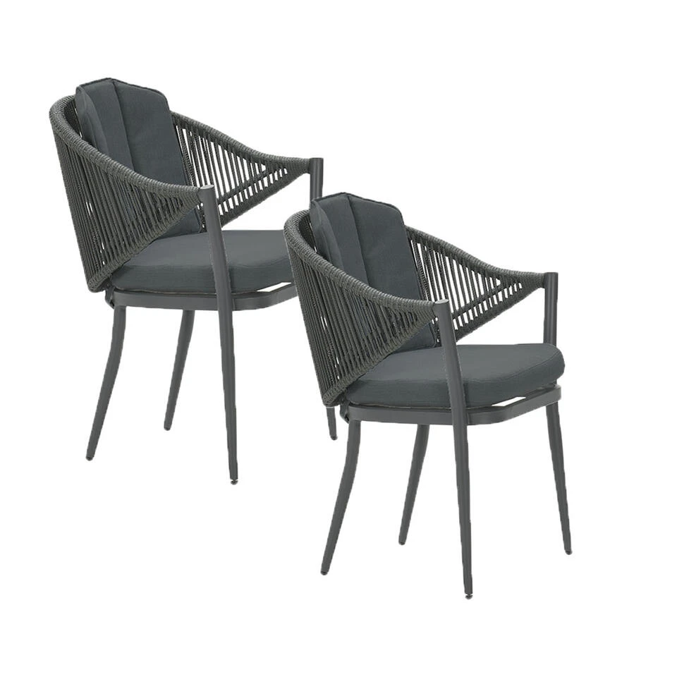 De Kyra tuinstoel is vervaardigd uit een onderhoudsvrij aluminium frame met een stevige poedercoating. Om dit aluminium frame zit 8 mm dik hoogwaardige kwaliteit donker grijs gekleurd touw. Dit touw is te vergelijken met touw dat in de scheepsvaart gebruikt wordt. Het touw is voorzien van een rubberen kern binnenin met daarin meerdere polyester draden voor de stevigheid. Om de rubberen kern zit solution dyed polyester rope. Dit betekent dat het touw door en door gekleurd is en verkleurt veel minder snel.